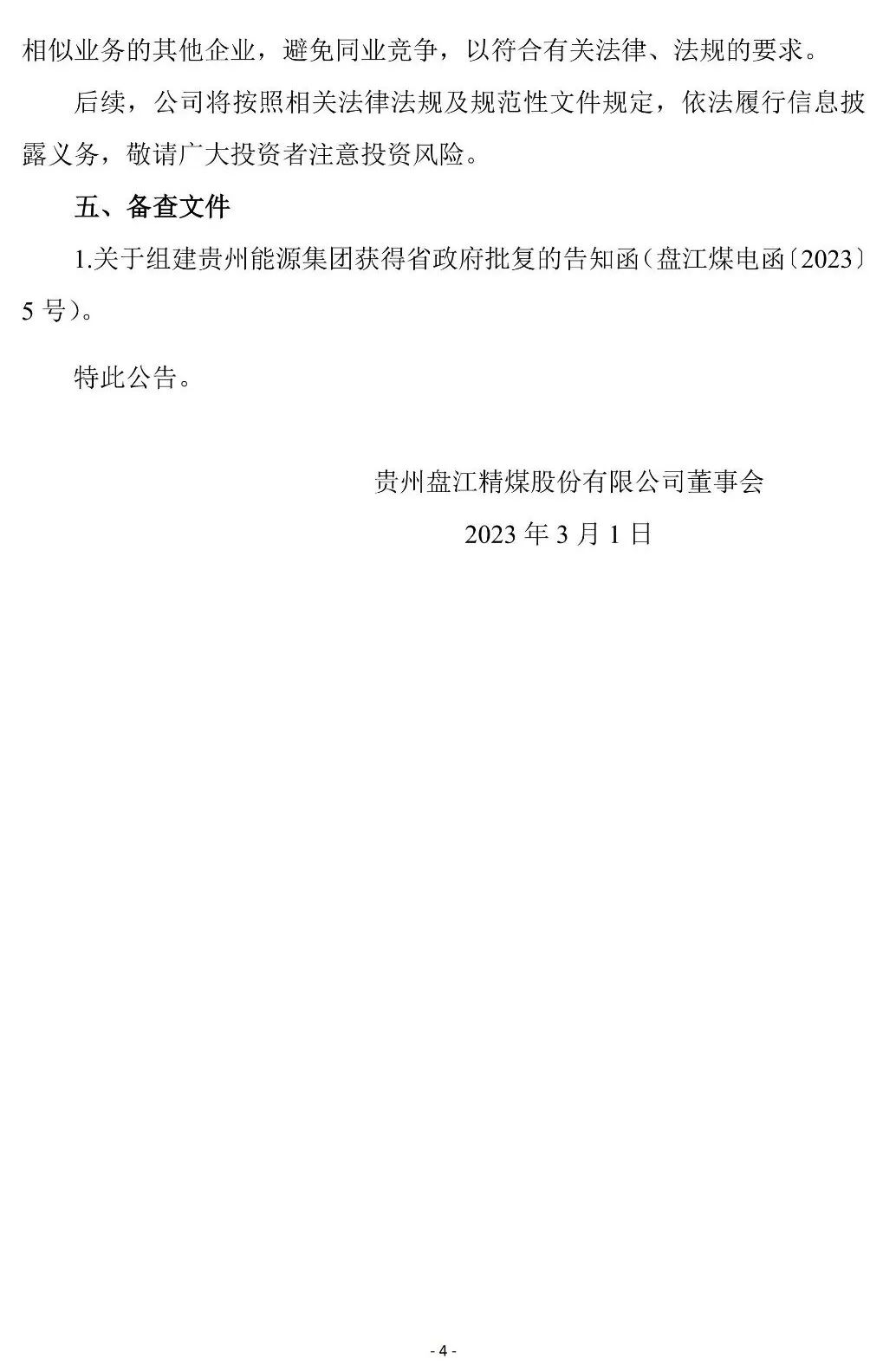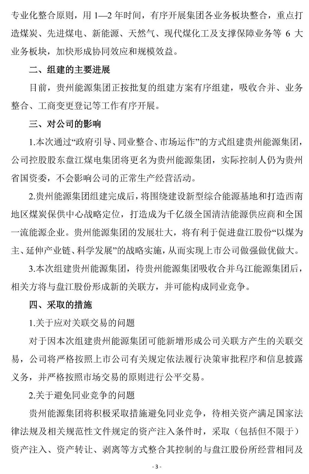 3月1日,盤江股份發(fā)布《關(guān)于控股股東更名的公告》(以下簡(jiǎn)稱《公告》)。貴州省擬組建貴州能源集團(tuán)有限公司(以下簡(jiǎn)稱“貴州能源集團(tuán)”),將盤江煤電集團(tuán)更名為貴州能源集團(tuán)。吸收合并貴州烏江能源集團(tuán)有限責(zé)任公司(以下簡(jiǎn)稱“烏江能源集團(tuán)”)后,注銷烏江能源集團(tuán)。