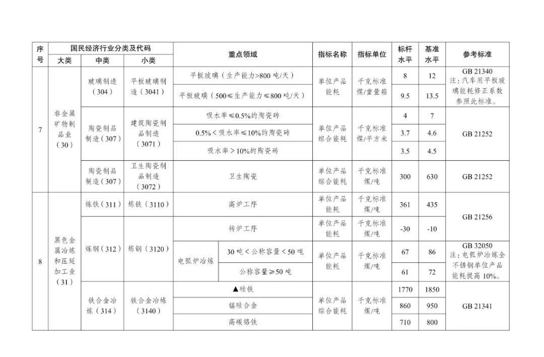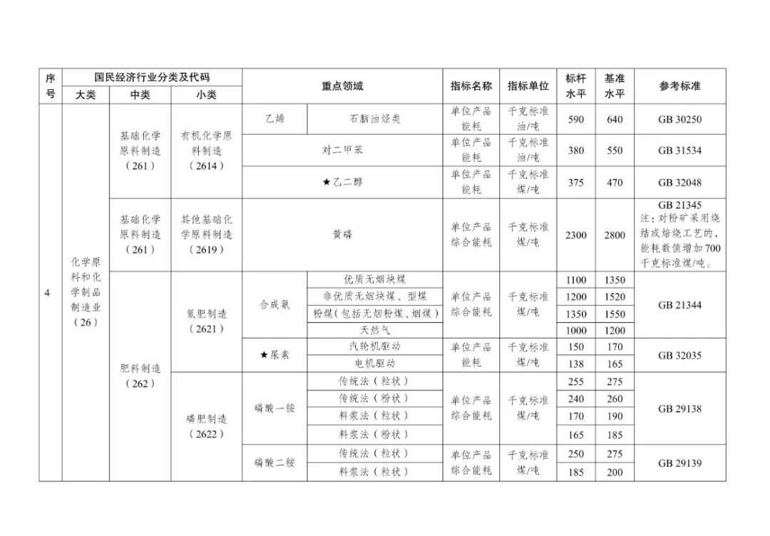 結(jié)合工業(yè)重點(diǎn)領(lǐng)域產(chǎn)品能耗、規(guī)模體量、技術(shù)現(xiàn)狀和改造潛力等,進(jìn)一步拓展能效約束領(lǐng)域。在此前明確煉油、煤制焦炭、煤制甲醇、煤制烯烴、煤制乙二醇、燒堿、純堿、電石、乙烯、對(duì)二甲苯、黃磷、合成氨、磷酸一銨、磷酸二銨、水泥熟料、平板玻璃、建筑陶瓷、衛(wèi)生陶瓷、煉鐵、煉鋼、鐵合金冶煉、銅冶煉、鉛冶煉、鋅冶煉、電解鋁等25個(gè)重點(diǎn)領(lǐng)域能效標(biāo)桿水平和基準(zhǔn)水平的基礎(chǔ)上,增加乙二醇,尿素,鈦白粉,聚氯乙烯,精對(duì)苯二甲酸,子午線輪胎,工業(yè)硅,衛(wèi)生紙?jiān)垺⒓埥碓?,棉、化纖及混紡機(jī)織物,針織物、紗線,粘膠短纖維等11個(gè)領(lǐng)域,進(jìn)一步擴(kuò)大工業(yè)重點(diǎn)領(lǐng)域節(jié)能降碳改造升級(jí)范圍。