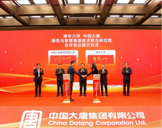 張國(guó)華、鄒磊、俞培根、趙大春、姜培學(xué)共同為中國(guó)大唐集團(tuán)科技創(chuàng)新有限公司、中國(guó)大唐集團(tuán)數(shù)字科技有限公司揭牌,清華大學(xué)、中國(guó)大唐簽署了《清華大學(xué)、中國(guó)大唐集團(tuán)有限公司綠色與智慧能源技術(shù)聯(lián)合研究院合作協(xié)議》。