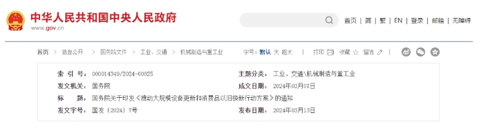 3月13日,國務(wù)院印發(fā)《推動(dòng)大規(guī)模設(shè)備更新和消費(fèi)品以舊換新行動(dòng)方案》(以下簡稱《行動(dòng)方案》)。
