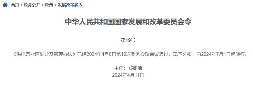 國家發(fā)展改革委印發(fā)《供電營業(yè)區(qū)劃分及管理辦法》