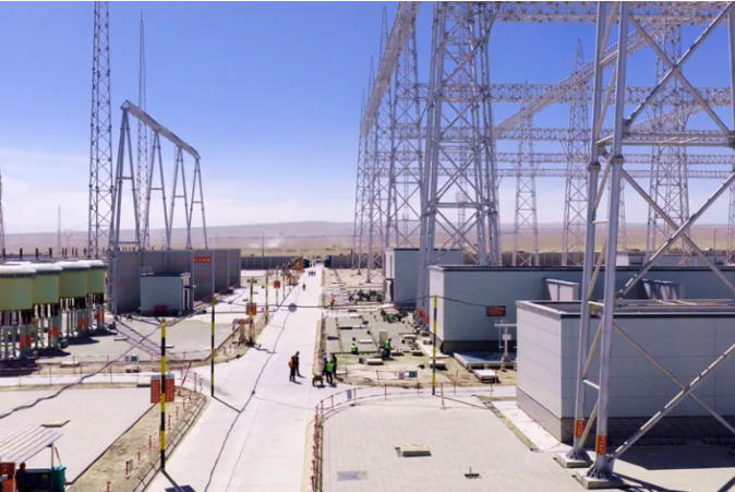▲“疆電外送”的首個(gè)特高壓直流輸電工程送端——新疆±800千伏天山換流站