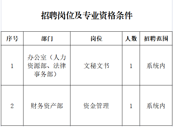 根據(jù)工作需要,公司面向華電系統(tǒng)內(nèi)公開招聘一般管理人員2人,有關(guān)事項(xiàng)公告如下: