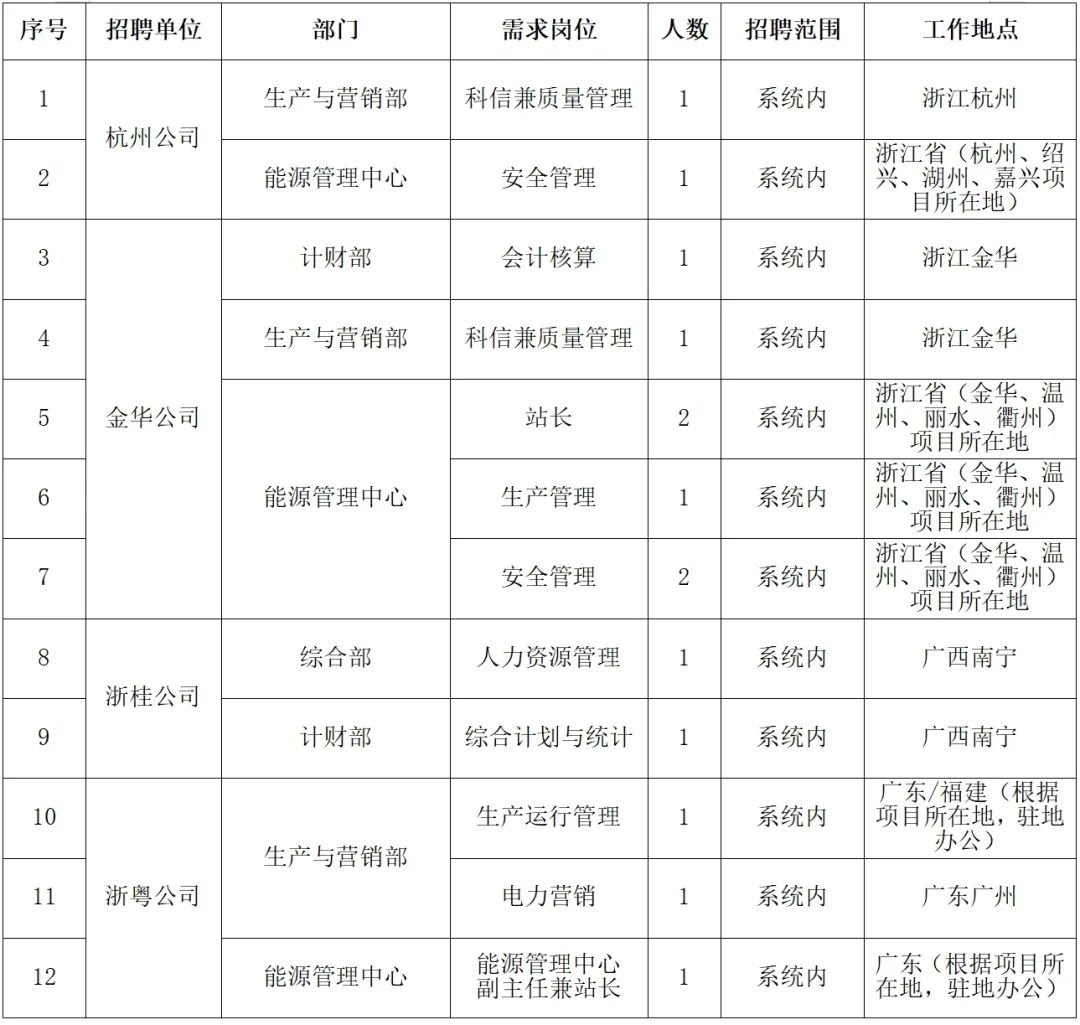 詳見《國家電投集團浙江公司招聘崗位職責及任職條件》(附件1)。