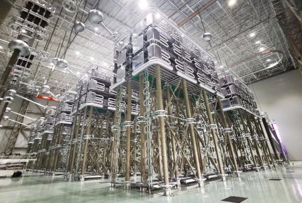 柳北換流站作為昆柳龍直流工程的一環(huán),承接了從昆北到龍門的送電任務。特變電工承擔柳北極1換流站設備研制與生產(chǎn)任務,設備總容量為3GW,涉及2個閥廳24個閥塔。作為柔性直流輸電技術的心臟——換流閥,是直流電和交流電相互轉換的橋梁,通過換流閥可以實現(xiàn)交流電和直流電的電壓(即:交直流電不同電壓等級之間互聯(lián)互相轉換)變換,可以實現(xiàn)送電功率(即:電容量大小)的變送,這在柔性直流主設備中技術含量最高、挑戰(zhàn)最大。