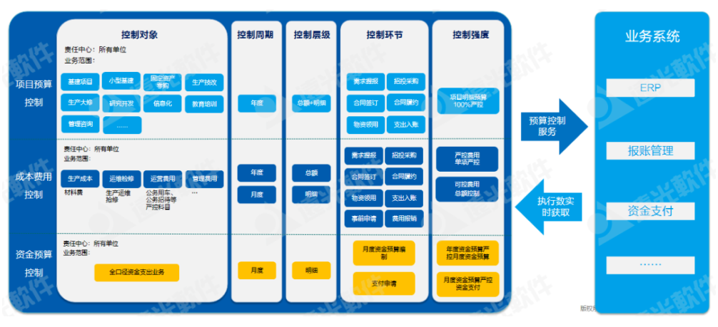通過建立全方位、全流程、多周期、預(yù)算資金雙流雙控、預(yù)警監(jiān)控等控制體系,按照“無預(yù)算不開支、無預(yù)算不投資”原則,嚴控預(yù)算外經(jīng)濟行為,實現(xiàn)對財務(wù)資源使用過程的及時監(jiān)控,確保財務(wù)資源的使用安全,提升企業(yè)以財務(wù)管理為驅(qū)動的經(jīng)營管理能力的提升,加強集團對下屬單位的風(fēng)險管控。