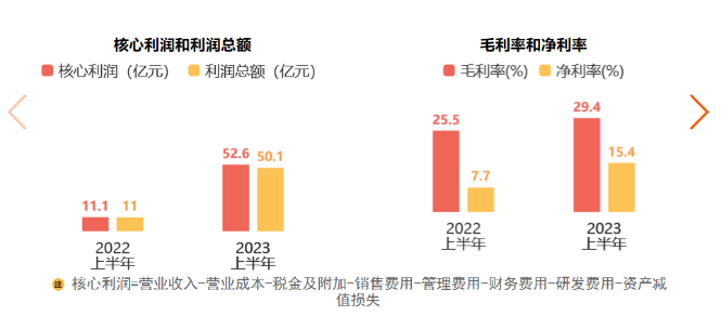 2023年上半年,公司毛利率為29.4%,相比去年同期的25.5%有所提升。公司凈利率高達(dá)15.4%,相比去年同期的7.7%也有明顯上揚。(下圖來自東方財富網(wǎng))