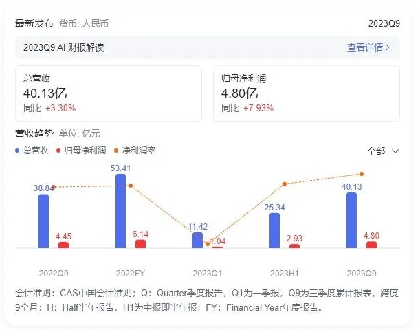 沃爾核材:2023三季報凈利潤4.8億 同比增長7.87%