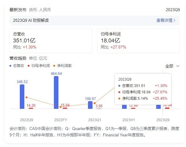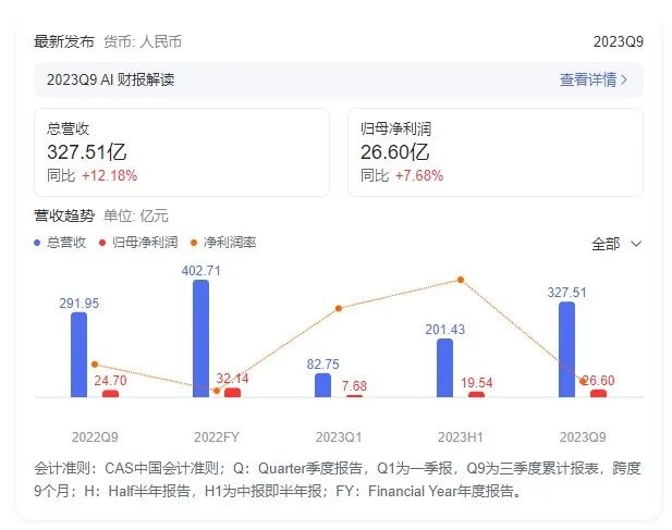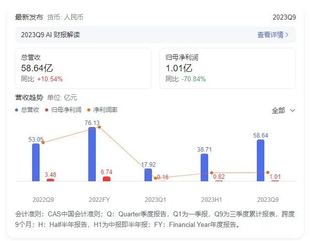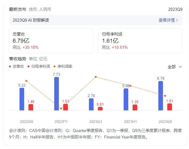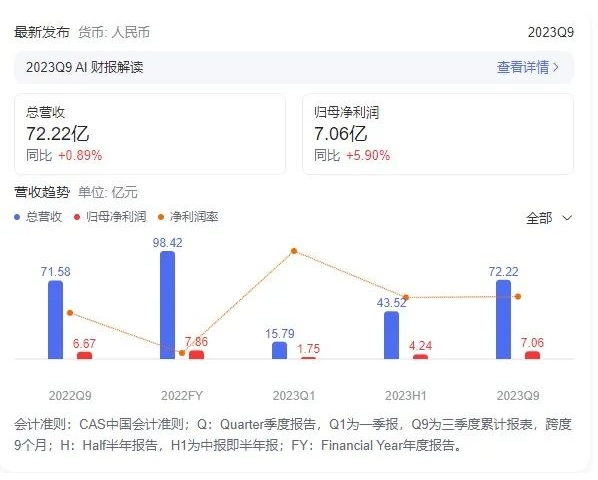 漢纜股份:2023三季報凈利潤7.06億 同比增長5.85%