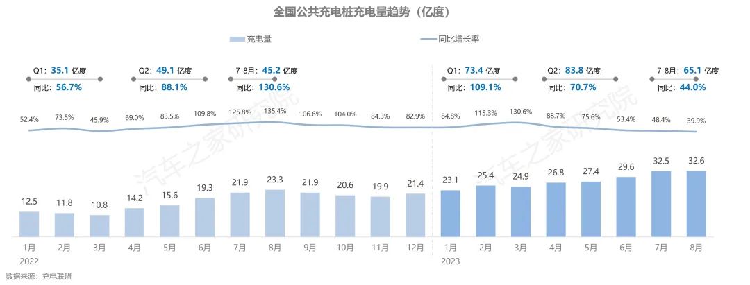 從結(jié)構(gòu)上看,私樁是目前新能源汽車補(bǔ)能的主要方式,占據(jù)充電樁近7成的保有量,而且發(fā)展增速更快。2023年1-8月,公共充電樁新增安裝47.4萬(wàn)臺(tái),7-8月安裝12萬(wàn)臺(tái),新增安裝量已超過(guò)去年整體Q3增量規(guī)模,恢復(fù)上行態(tài)勢(shì),但其增量水平與整體規(guī)模,同私人充電樁規(guī)模相比差距增大。