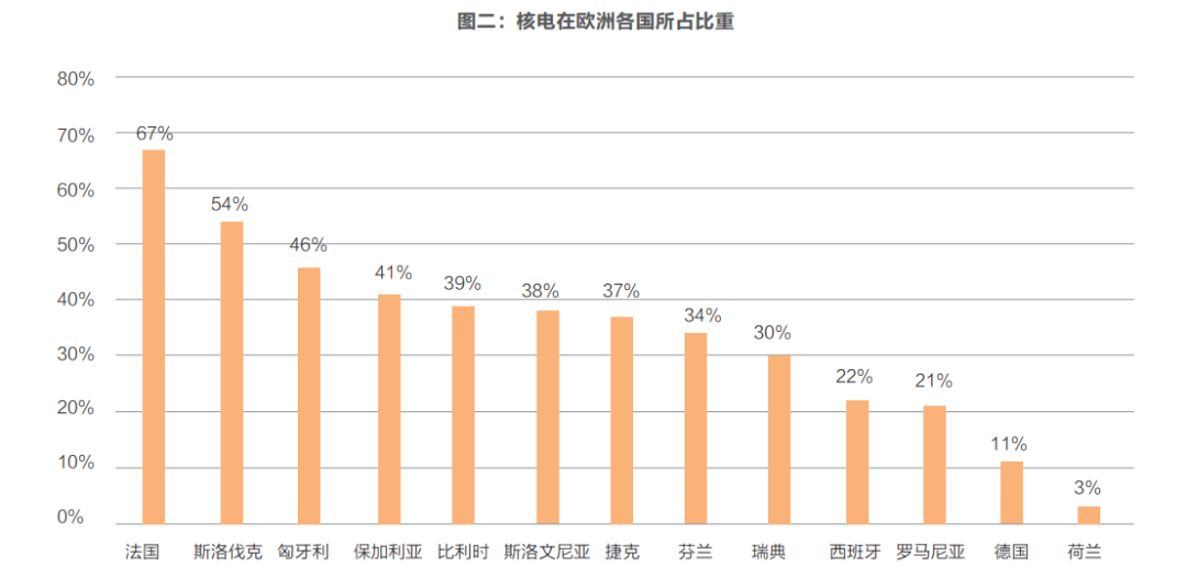 2021年,核能提供了歐盟約27%的電力供應(yīng),占其低碳電力的一半。其中,9個國家的核電比例超過30%。也就是意味著,如果歐盟脫離核電,需要為四分之一的電量尋找新的電源??梢钥隙ǖ氖牵@些電力無法被其他零碳能源迅速取代。