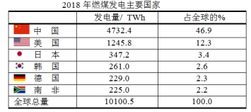 由于燃煤發(fā)電價(jià)廉,一直居高位,2011年占全球發(fā)電總量的9144/22126= 41.3%,到2018年回落速度緩慢,仍然保持在10100.5/26614.8= 38.0%。2018年最大的燃煤發(fā)電生產(chǎn)國(guó)是中國(guó),占全球燃煤發(fā)電總量的46.9%;其次是美國(guó),占總量的 12.3%,比往年逐步回落。