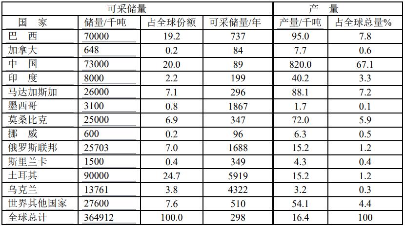 2021年底世界各國天然石墨的可采儲(chǔ)量和產(chǎn)量
