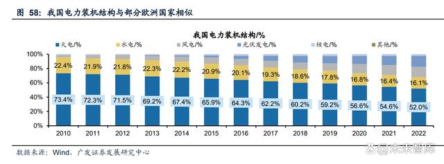部分歐洲國(guó)家與我國(guó)電力結(jié)構(gòu)相似,能源轉(zhuǎn)型過(guò)程值得借鑒。從我國(guó)電力裝機(jī)結(jié)構(gòu)來(lái)看,過(guò)去我國(guó)以傳統(tǒng)電源火電、水電為主,2010年兩者裝機(jī)占比96%,風(fēng)光等可 再生能源逐漸成為發(fā)展重點(diǎn),水電、火電裝機(jī)占比下降,2022年火電裝機(jī)占比52%, 水電開發(fā)已進(jìn)入后半程增量有限,風(fēng)光成為新增裝機(jī)主力,這與部分歐洲國(guó)家如德 國(guó)、波蘭頗為相似,2022年德國(guó)煤電發(fā)電量占比已經(jīng)降至31%,風(fēng)光發(fā)電量占比提 升至32%,其能源轉(zhuǎn)型走在我國(guó)之前。隨著我國(guó)提出雙碳目標(biāo),風(fēng)光占比提升成為 必然趨勢(shì),德國(guó)等歐洲國(guó)家能源轉(zhuǎn)型過(guò)程中的經(jīng)驗(yàn)對(duì)我國(guó)有重要的借鑒意義。