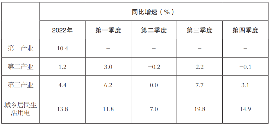 表2 2022年分產(chǎn)業(yè)用電量季度增速情況