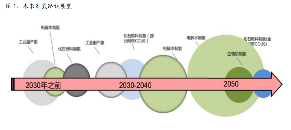 發(fā)展氫能是達(dá)到全球“雙碳”目標(biāo)的重要途徑。氫能是一種來(lái)源豐富、綠色低碳、應(yīng)用廣 泛的二次能源,能幫助可再生能源大規(guī)模消納,實(shí)現(xiàn)電網(wǎng)大規(guī)模調(diào)峰和跨季節(jié)、跨地域儲(chǔ) 能,加快推進(jìn)工業(yè)、建筑、交通等領(lǐng)域的低碳化。目前全球氫能發(fā)展如火如荼,中國(guó)國(guó)家 發(fā)改委、國(guó)家能源局聯(lián)合印發(fā)了《氫能產(chǎn)業(yè)發(fā)展中長(zhǎng)期規(guī)劃(2021-2035 年)》確定了氫 能是未來(lái)國(guó)家能源體系的重要組成部分,海外對(duì)綠氫的重視程度也越來(lái)越高,2020 年歐 盟發(fā)布了《歐盟氫能戰(zhàn)略》,旨在推動(dòng)氫能在工業(yè)、交通、發(fā)電等全領(lǐng)域應(yīng)用;同年美國(guó)發(fā) 布《氫能計(jì)劃發(fā)展規(guī)劃》,指定多項(xiàng)關(guān)鍵技術(shù)經(jīng)濟(jì)指標(biāo),期望成為氫能產(chǎn)業(yè)鏈中的市場(chǎng)領(lǐng)導(dǎo) 者。我們認(rèn)為氫能的開發(fā)和利用有望引發(fā)深刻的能源革命,必須重視氫能行業(yè)的發(fā)展和投 資機(jī)會(huì)。