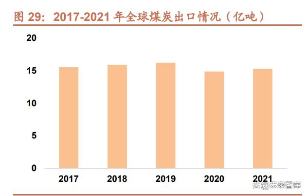 地緣政治局勢變化影響能源市場,全球動力煤價格高企抬升中國動力煤進口成本。受疫情影響,2020 年以來全球煤 炭出口數(shù)量持續(xù)下降,2020 年全球煤炭出口總量為 14.86 億噸,較 2019 年下降 8.3%,2021 年回升至 15.27 億噸, 但仍低于 2019 年水平。而地緣政治局勢的惡化則進一步影響了煤炭市場,2022 年動力煤供應進一步惡化。2022 年 1 月,印尼政府為緩解國內(nèi)電廠缺煤形勢宣布 1 月內(nèi)禁止出口煤炭,引發(fā)國際煤炭市場震蕩,海運煤市場供給大幅減 少,煤價開啟上行之路。2022 年 2 月,俄烏沖突爆發(fā),美國與歐盟對俄羅斯實行能源禁運,俄羅斯 3 月以來煤炭、 石油、天然氣出口量均大幅下降,煤炭出口的下降直接沖擊了全球動力煤市場,而天然氣出口的下降使得歐洲出現(xiàn)較 大程度的能源短缺,歐洲多國被迫重拾其他替代能源,煤電也包括在內(nèi),根據(jù)國際能源署的統(tǒng)計,2022 年歐洲燃煤 發(fā)電量同比增長 6%,歐洲能源結構的變化加劇了全球煤炭供給的短缺。2022 年中國的動力煤進口成本飆升。