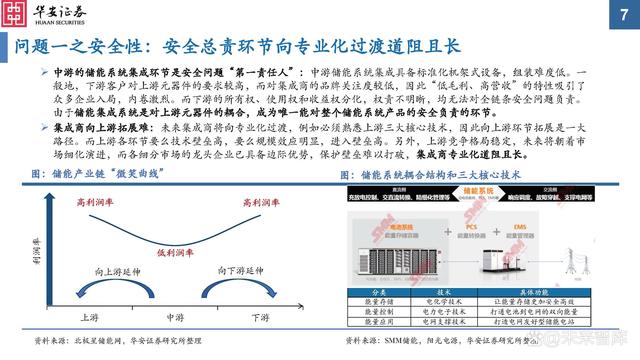中游的儲(chǔ)能系統(tǒng)集成環(huán)節(jié)是安全問(wèn)題“第一責(zé)任人” :中游儲(chǔ)能系統(tǒng)集成具備標(biāo)準(zhǔn)化機(jī)架式設(shè)備,組裝難度低。一般地,下游客戶對(duì)上游元器件的要求較高,而對(duì)集成商的品牌關(guān)注度較低,因此“低毛利、高營(yíng)收”的特性吸引了眾多企業(yè)入局,內(nèi)卷激烈。而下游的所有權(quán)、使用權(quán)和收益權(quán)分化,權(quán)責(zé)不明晰,均無(wú)法對(duì)全鏈條安全問(wèn)題負(fù)責(zé)。由于儲(chǔ)能集成系統(tǒng)是對(duì)上游元器件的耦合,成為唯一能對(duì)整個(gè)儲(chǔ)能系統(tǒng)產(chǎn)品的安全負(fù)責(zé)的環(huán)節(jié)。
