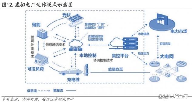 未來隨著電力市場成熟,工商業(yè)儲(chǔ)能也可以通過虛擬電廠以聚合的方式參與電力市場交易。虛擬電廠是應(yīng)用先進(jìn)的通訊和控制技術(shù),實(shí)現(xiàn)對大量散布的分布式資源的聚合調(diào)控,使這些分布式資源規(guī)模化,并具備參與電力系統(tǒng)運(yùn)行調(diào)度的資格和能力。“虛擬”的含義是這些資源并非真正的發(fā)電廠,而是對分布式資源的聚合,“電廠”的含義是能夠像真正的發(fā)電廠一樣為電力系統(tǒng)提供電能量和輔助服務(wù)。