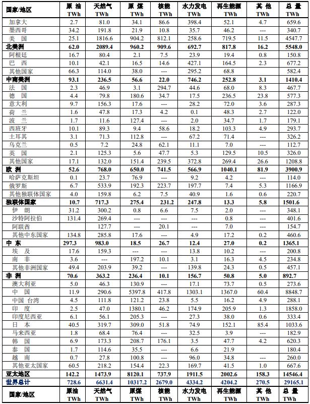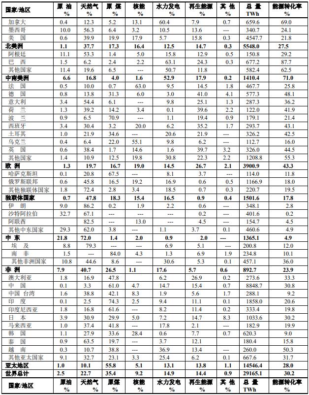 本表實際上是(水力發(fā)電+再生能源+其他能源)的百分數之和。