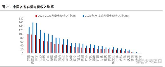 (3)煤電機組最大出力;煤電機組可獲得的容量電費,根據(jù)當?shù)孛弘娙萘侩妰r和機組申報的最大出力確定,假設(shè) h 最大出力按額定容量的 100%。 按照各省煤電容量電價水平及煤電裝機容量(按容量電價適用率90%)測算,2024-2025年全國煤電容量電價收入預(yù)計 1121 億元,2026 年以后達到 1792 億元以上(不考慮煤電裝機變動情況,以及按